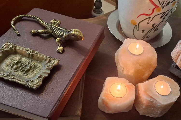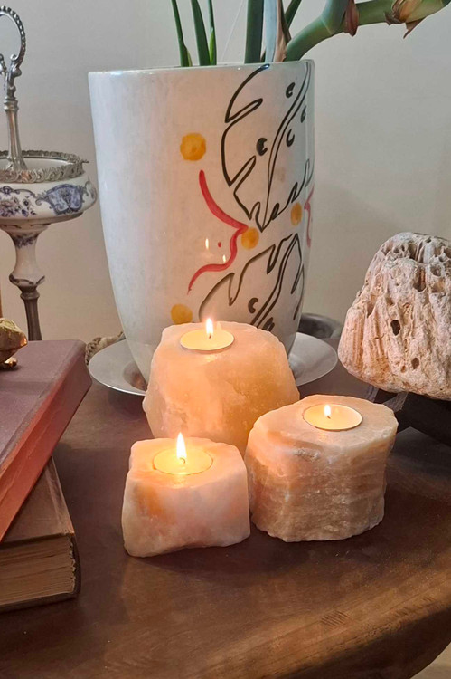 جا شمعی سنگ نمک، ترکیبی از زیبایی دکوراتیو و خواص درمانی. تصفیهکننده هوا، آرامشبخش و مناسب برای بهبود خواب.