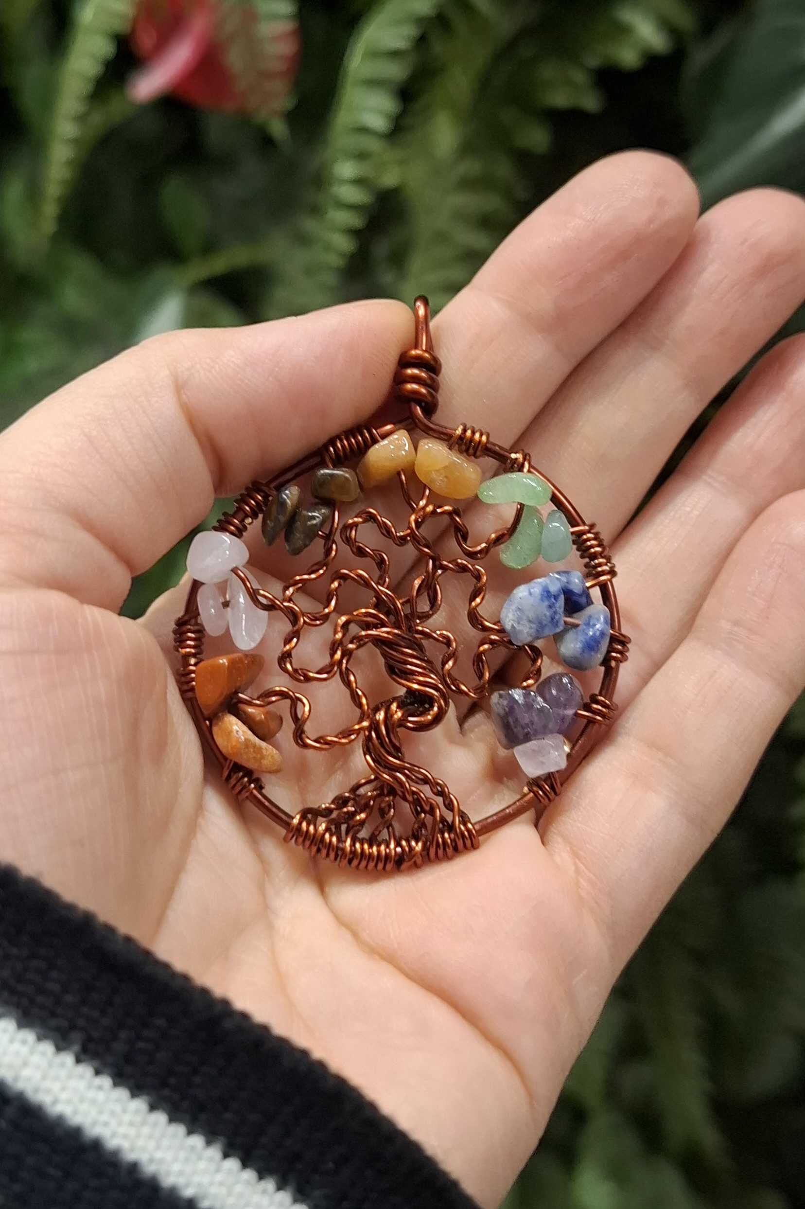 🌳 گردنبند درخت زندگی با سنگهای هفت چاکرا